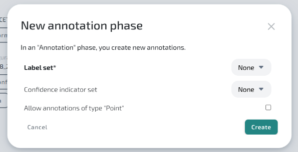You will need to fill in the Label set. You can also define a Confidence set and specify whether the "Point" annotation is authorised.
