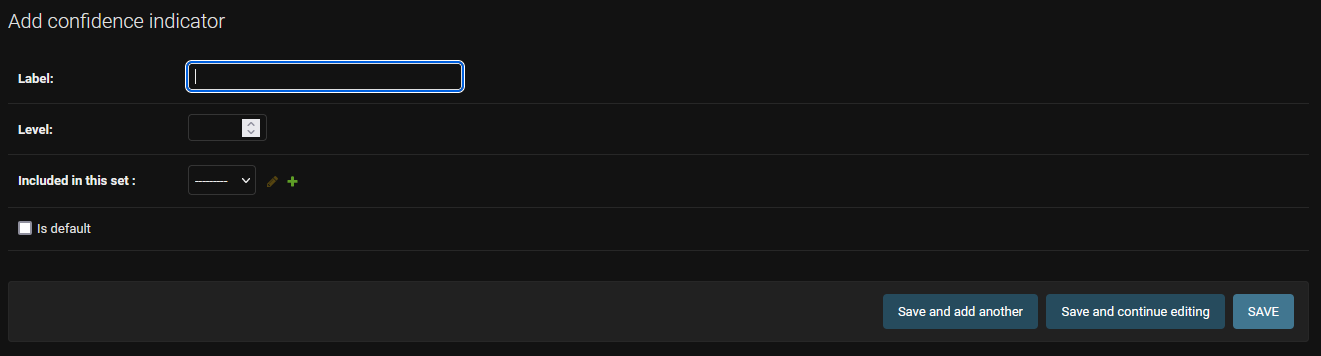 For each indicator you must fill the label, the level and the associated set that you have just created. You can define an indicator as the default one for your set by checking the “is default” checkbox.
