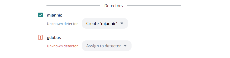 You will be asked to assign the CSV detectors to an existing one or to create a new one. Here you can also select only the detectors you want to check, in case the file contains multiple ones.