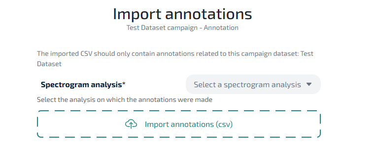 You can either click on the "Import annotation" zone or drag a file in it. The file should be a csv with the following columns: