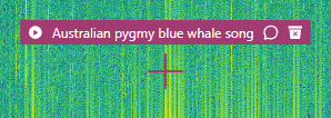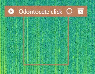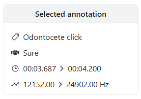 To create a box annotation, click on the spectrogram and drag over the area containing the sound of interest. On click release, the annotation is created and selected.