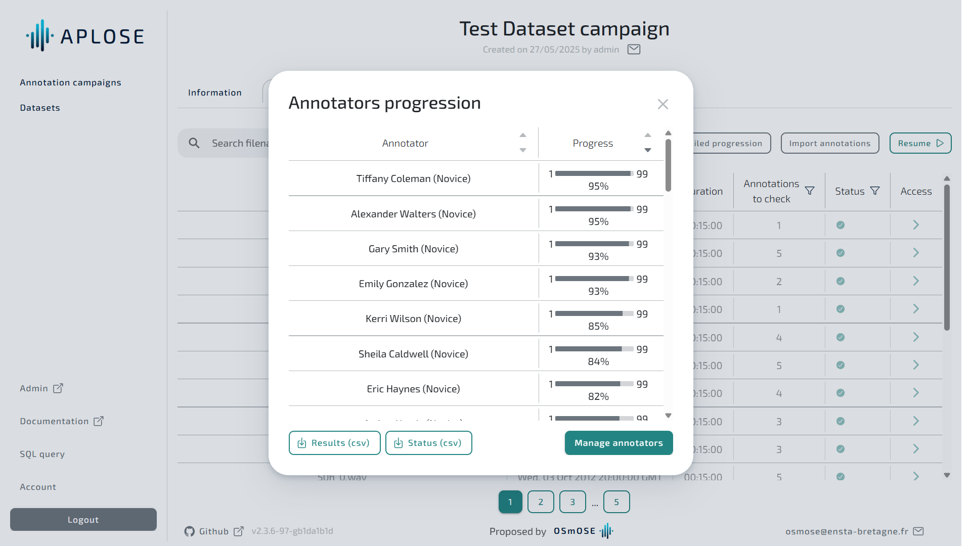 All the detail of the campaign can be found here. For more information about it, read the Annotation Campaign detail section.